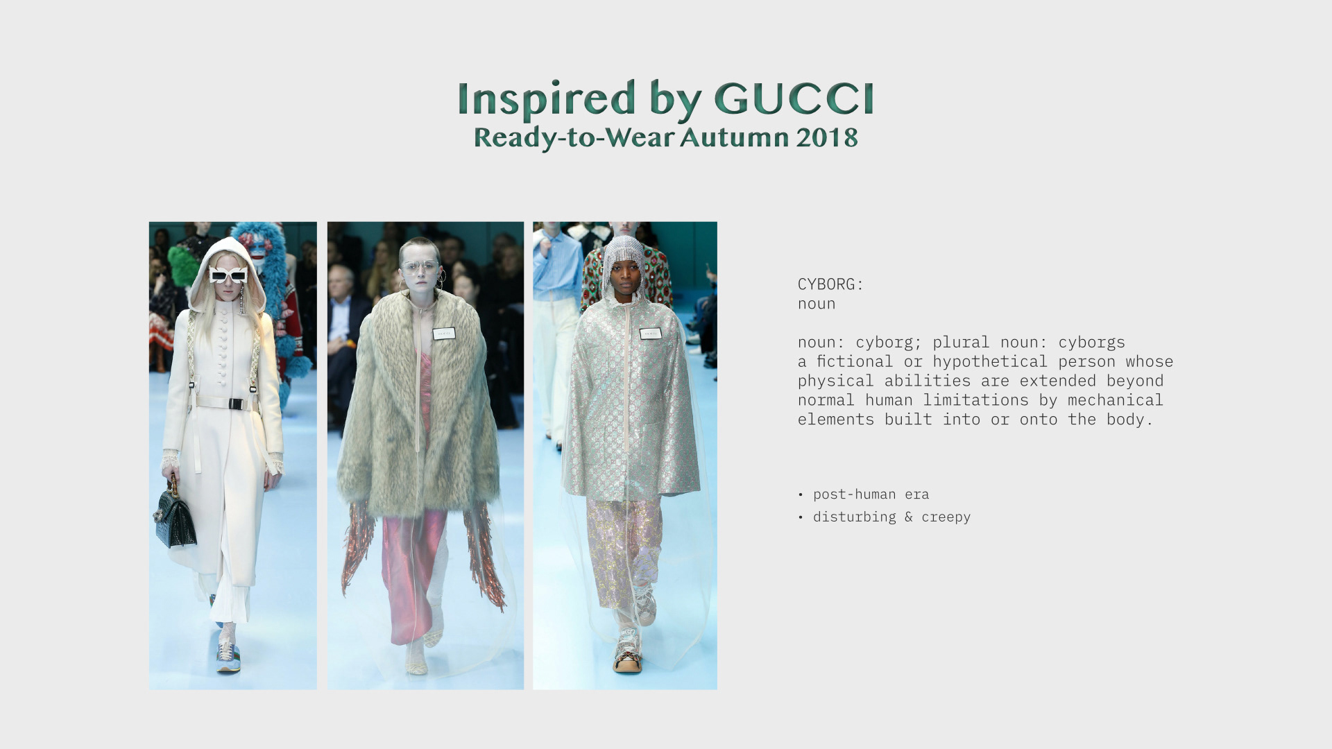 The Brief: Create a fashion film concept for the brand Gucci with a link to the current Zeitgeist. During the minor Fashion & Visual Culture I created the concept for and directed the fashion film 'A Tedious Nightmare'. The film features two isolated 'Cyborgs' in the year 2045 who are stuck in a loop. The film is inspired by Gucci's Ready-to-Wear Autumn 2018 collection as well as the current Covid-19 pandemic. In which I personally felt that I was becoming a Cyborg as due to digital education, I was spending entire days alone behind my laptop.